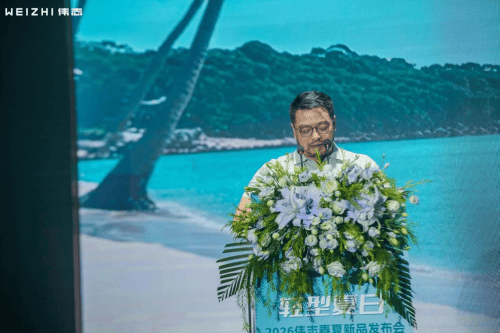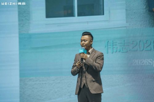 伟志集团董事长向毅先生登台致辞,从宏观环境、行业趋势到品牌战略,清晰勾勒出伟志2026年的发展蓝图。他强调,未来将围绕功能性面料、文化赋能、数字化转型、直播优化与品牌合规五大战略核心,持续为加盟商伙伴赋能。